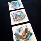 This triptych was inspired by my view of the earth below when descending towards the coast through the clouds on a late-night plane journey. I wanted to capture the plane’s movement through thermal currents and whisped clouds, and the way the lights stud the coastline like jewels.