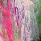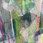 Since the end of 2021, I’ve honed in on experiments with collage on canvas. I use new and recycled media, including ripped-up pieces of my discarded drawings and colour tests, to household packaging and ‘drift-bits & bobs’ I find on my beach walks. I then layer ink and paint on top and then draw and draw, until It feels like I have captured a sensory response to the subject. I then use some metallic mediums to add extra life-spark, shine, and dynamism.